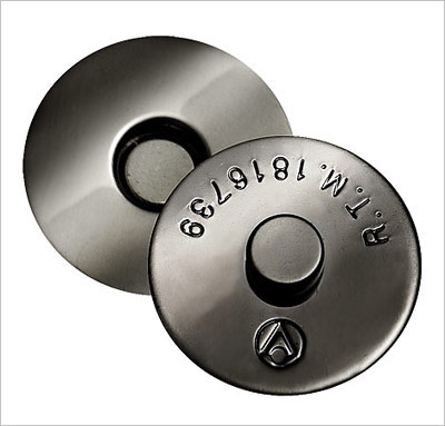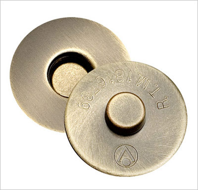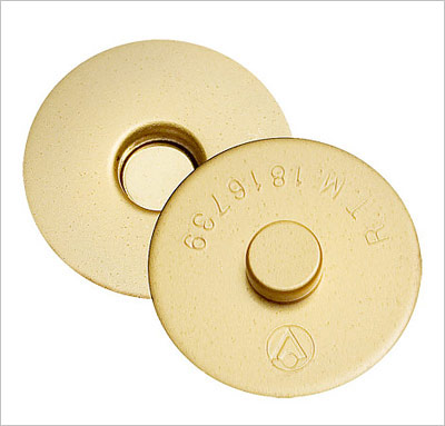 ハンドバッグに使われているマグネット留め具『マグネットホック=マグホック』です